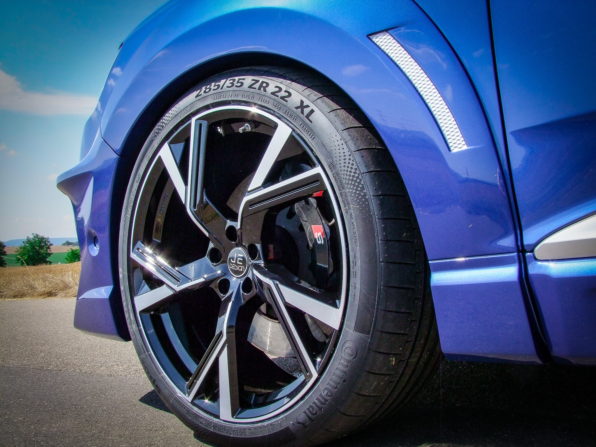 Um den durch die Kotflügelverbreiterung entstandenen Raum in den Radhäusern adäquat zu füllen, bietet JE DESIGN passende Komplettradsätze an. Diese messen 10 x 22 Zoll und werden samt Bereifung in der Dimension 285/35 R22 geliefert.