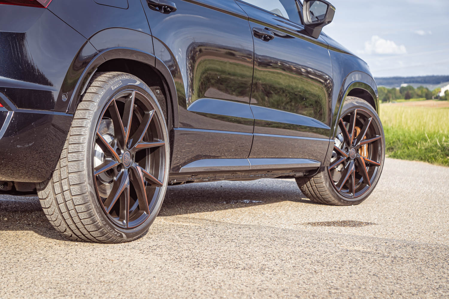 Das Schwarzglanz passt sehr gut zu den werksseitig bereits verbauten schwarz-glänzenden Teilen am Fahrzeug.