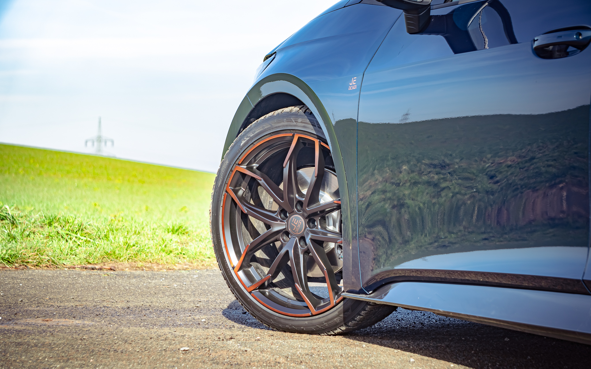 Damit die Räder sauber in den Radhäusern stehen, bieten wir für den Cupra Born Tieferlegungsfedern an. Diese werden in Verbindung mit den Original Stoßdämpfern verbaut. Das werksseitige DCC bleibt dabei voll in seiner Funktion erhalten.