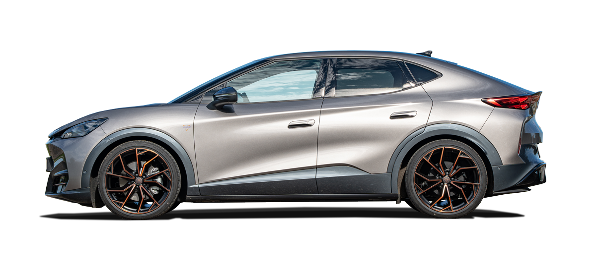 Here you will find an overview of the customization options for the Cupra Tavascan. Wheel rims and lowered suspension are currently available. Further components are still in preparation.