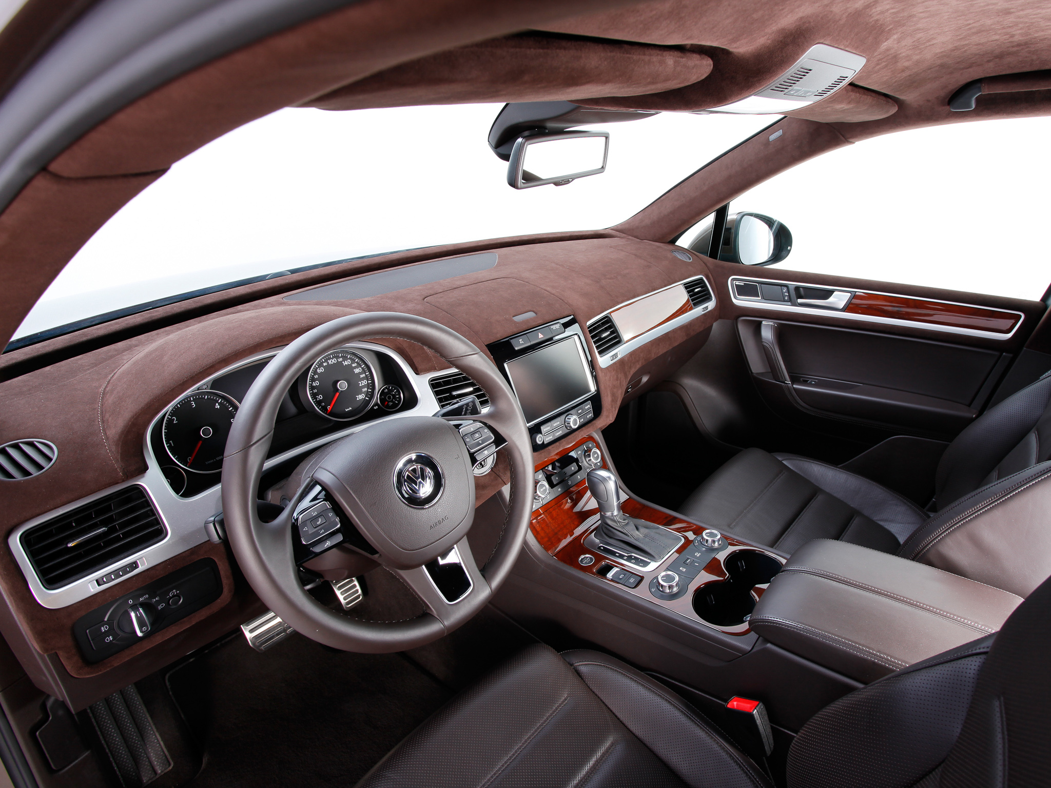 JE Design equips the Wolfsburg vehicle with its SUV-Select design, 10 x 22 inch aluminium wheels. A wheel spacer kit (30 mm front, 40 mm rear) ensures that the wheels fill the extended arches to optimum effect. The wheels are available in four different finishes: shadow silver with a polished front surface, matt black with a matt silver front surface, graphite shiny silver with polished rim and matt graphite silver with polished rim. However, custom painted wheels are also available at extra cost, so that every Touareg owner can customize his vehicle to his own taste.