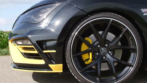 JE DESIGN offers tailor-made chassis upgrade solutions for the new Seat Leon Cupra 300. The basic conversion is a sport spring set designed for use with the original dampers , which provides a 20mm drop in ride height and sportier handling. The more hard-core enthusiasts can opt for the KW DDC fully adjustable coil over suspension , which features plug & play adaptation to the factory electronic damper controller. This allows the hot hatch to be lowered by up to 45mm for even better looks and handling.
