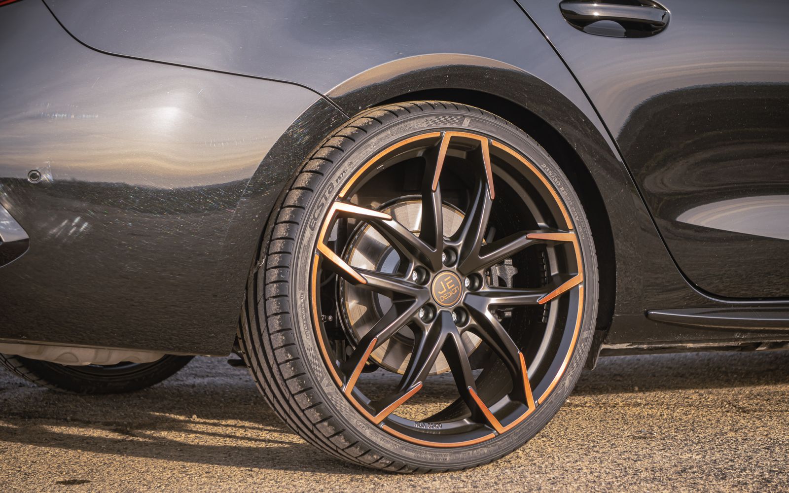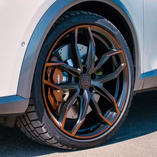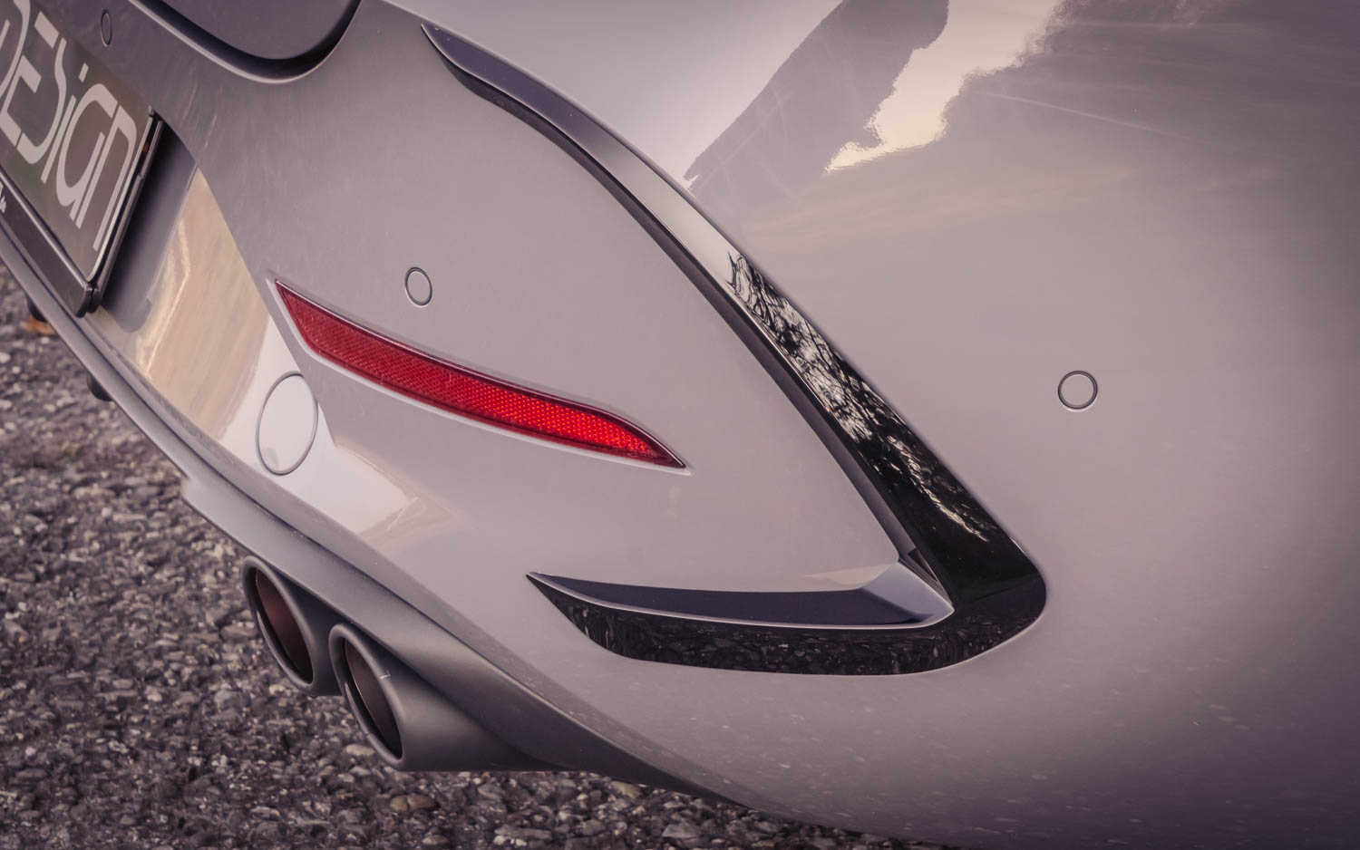 The wide kit consists of wheel arch extensions with side winglets on the front and rear axle. The winglets create a kind of air curtain through their inlets and outlets. This effect, also known as "air curtain" in the automotive world, ensures improved airflow around the vehicle.