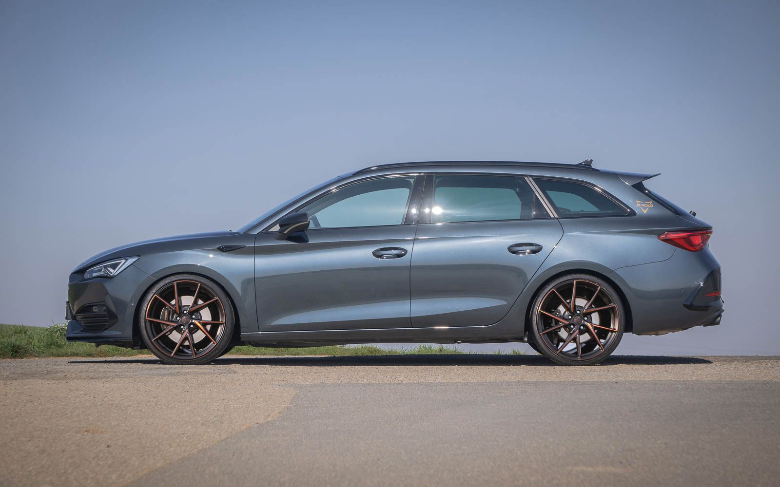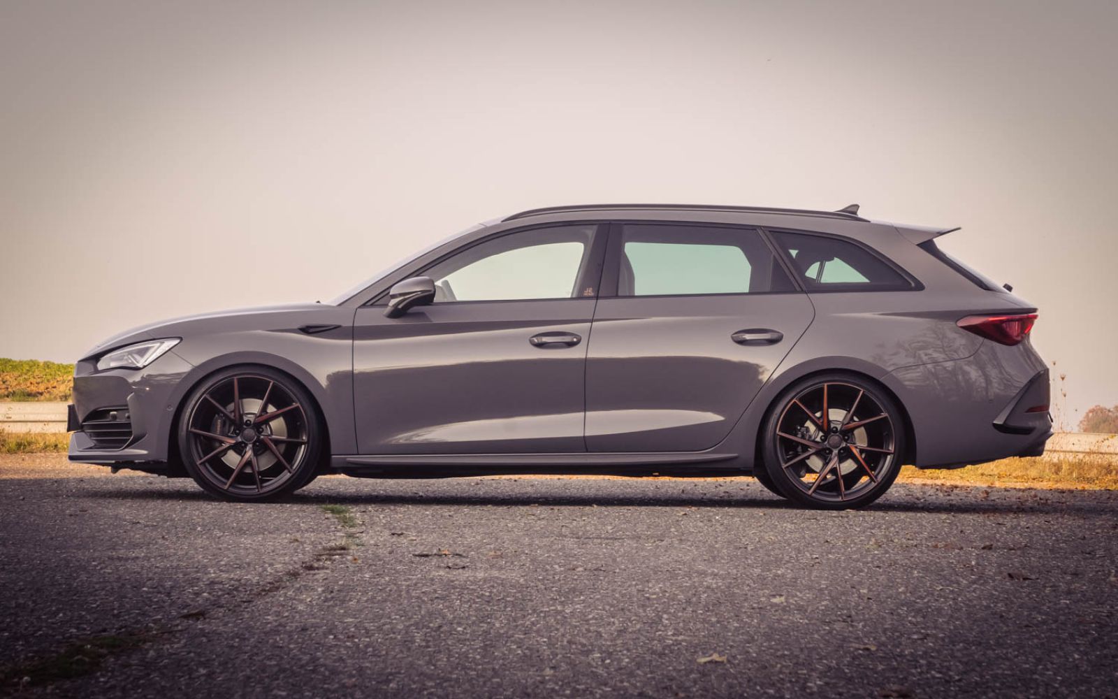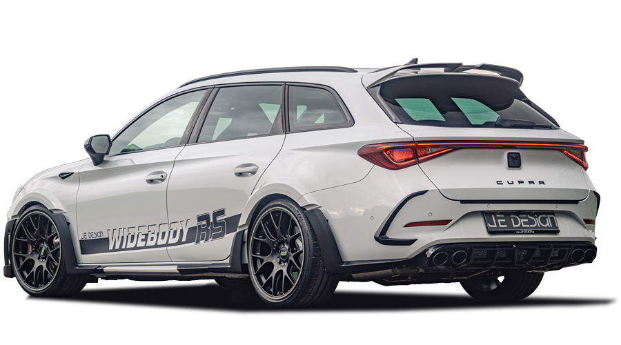 Our customization program for the Cupra Leon Sportstourer Type KL currently consists of aerodynamic parts rims and lowering springs. Other components will be added to the portfolio in the near future. With the WIDEBODY RS kit, we offer a widebody kit that turns the Leon into a super sports tourer. Our flap exhaust system rounds off the individualization program.