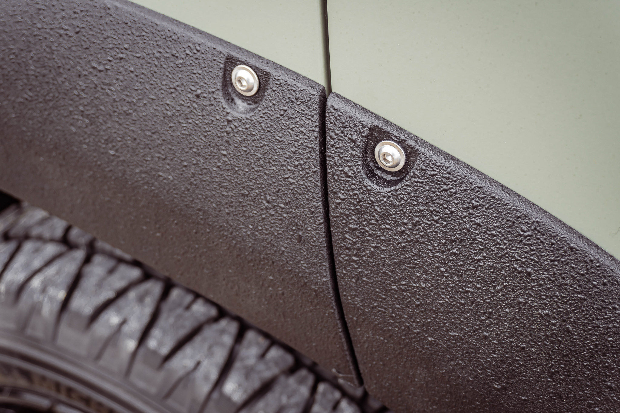 The add-on parts have a robust textured paint and offer sufficient wheel cover for appropriate off-road wheel-tire combinations. The rivets round off the look, but only have a visual purpose and are not riveted to the body.