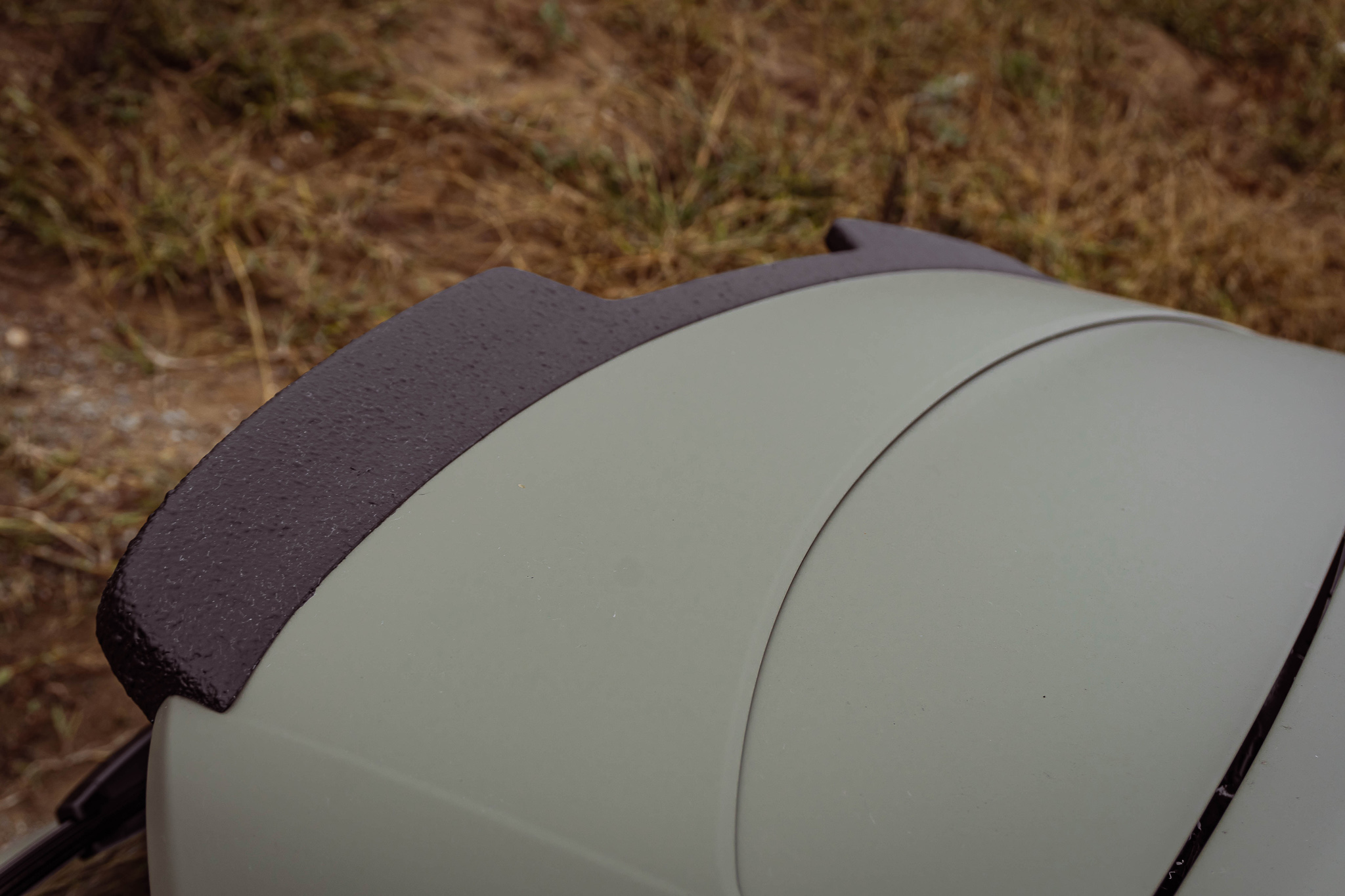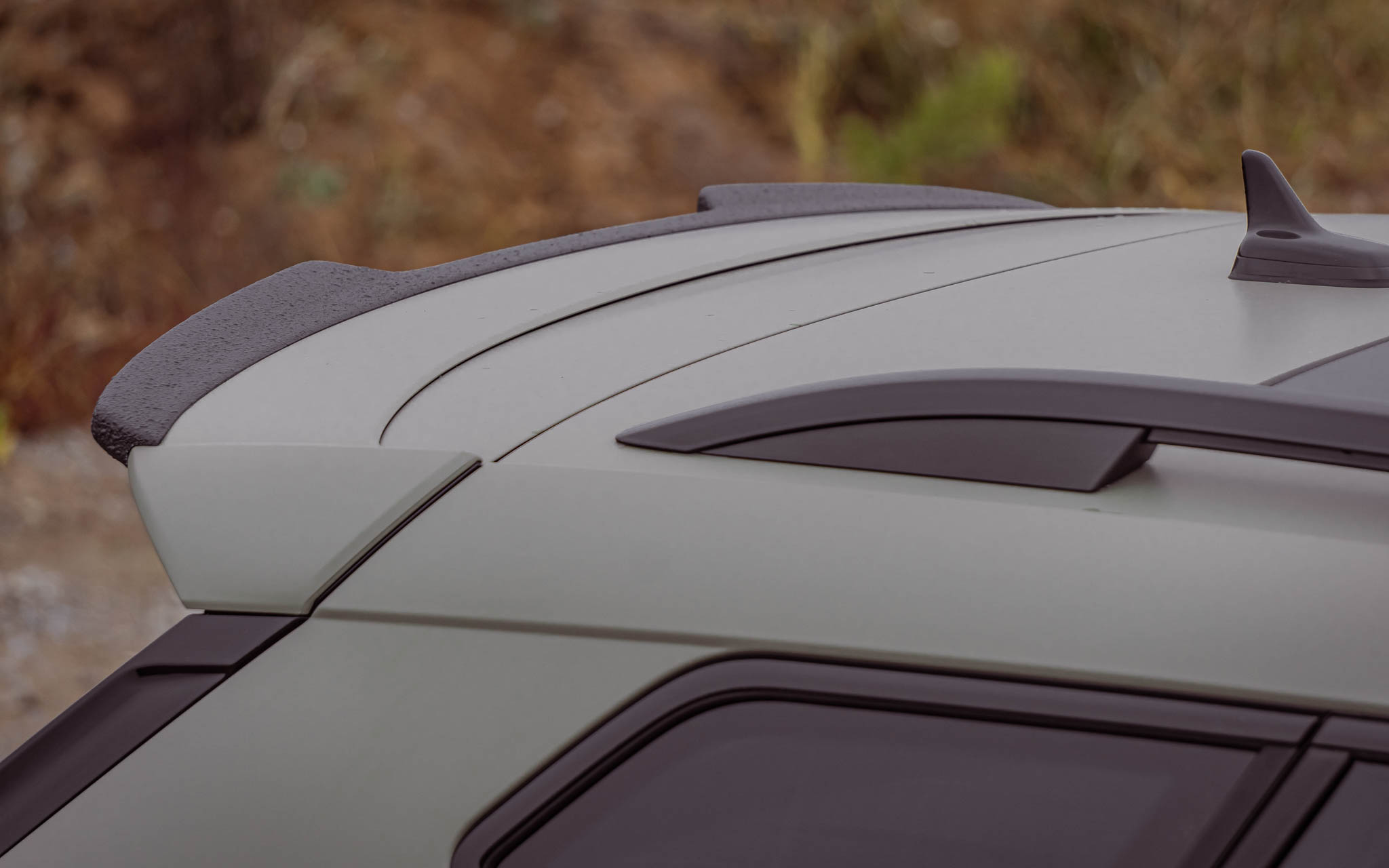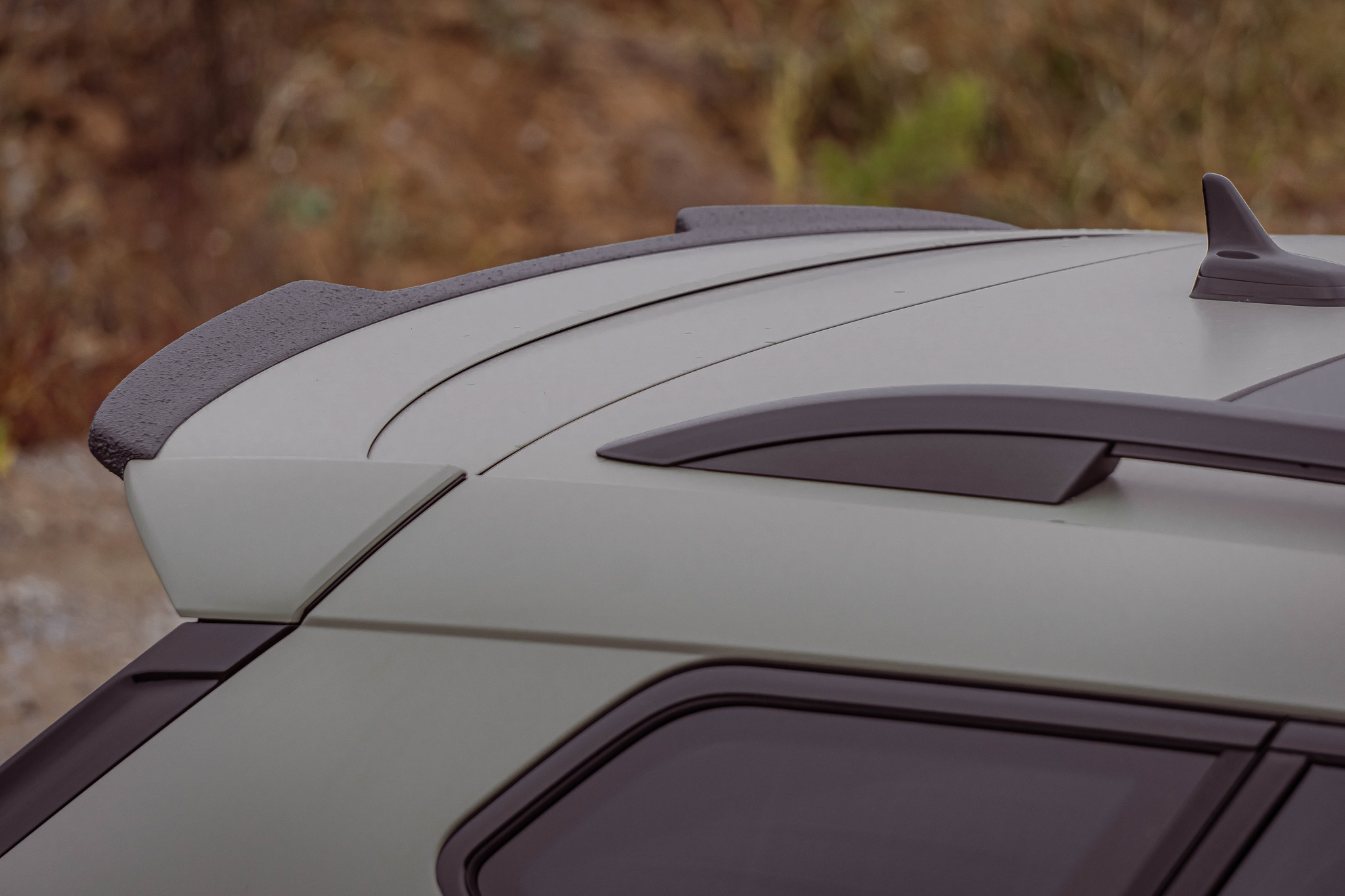 The rear spoiler lip is actually made of glossy black ABS plastic. For the "ALL-TERRAIN" variant, however, we have coated the rear spoiler with a black matt and robust textured paint. With this finish, the roof spoiler fits perfectly with the remaining attachments in the "ALL-TERRAIN" package.