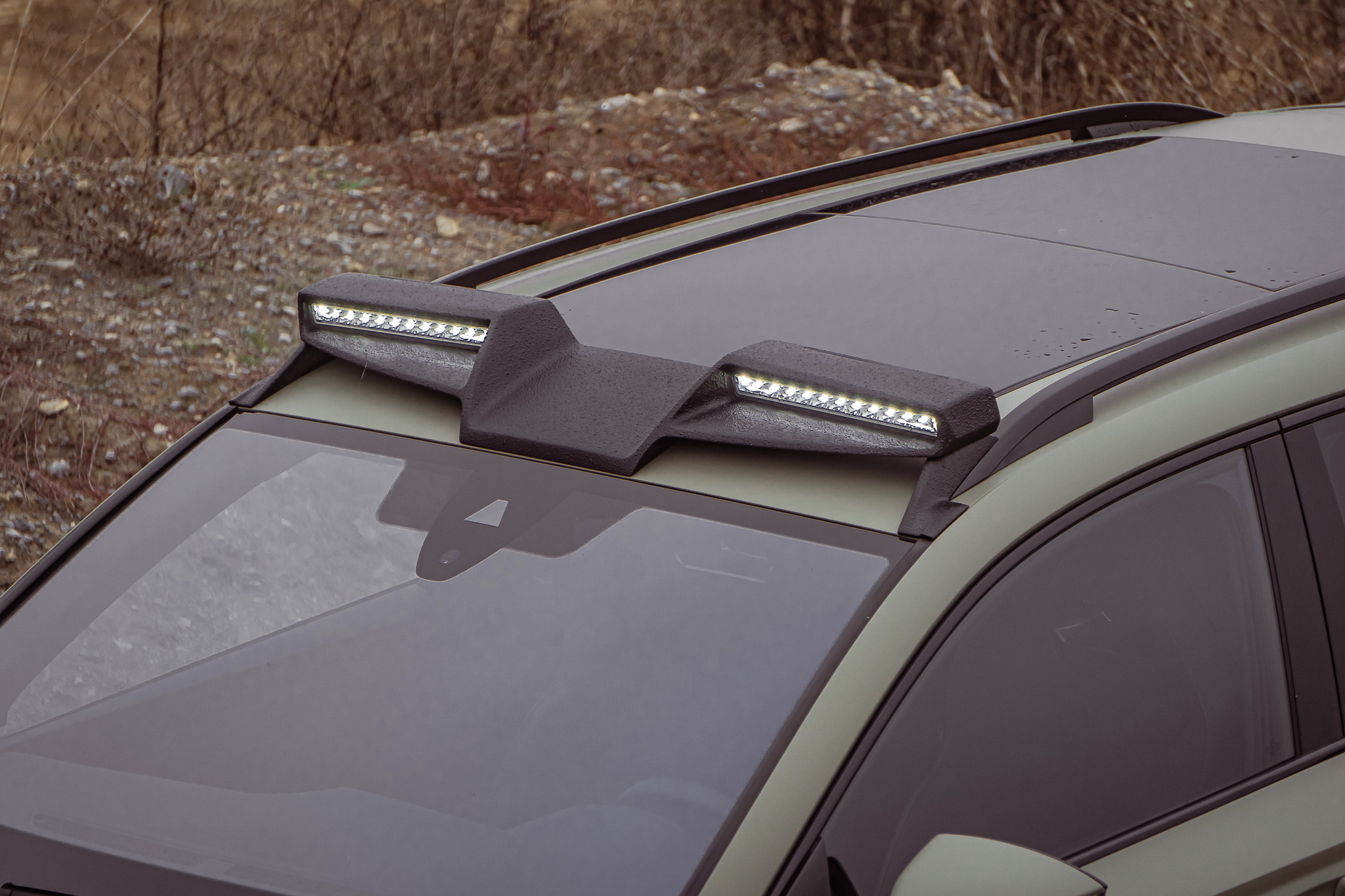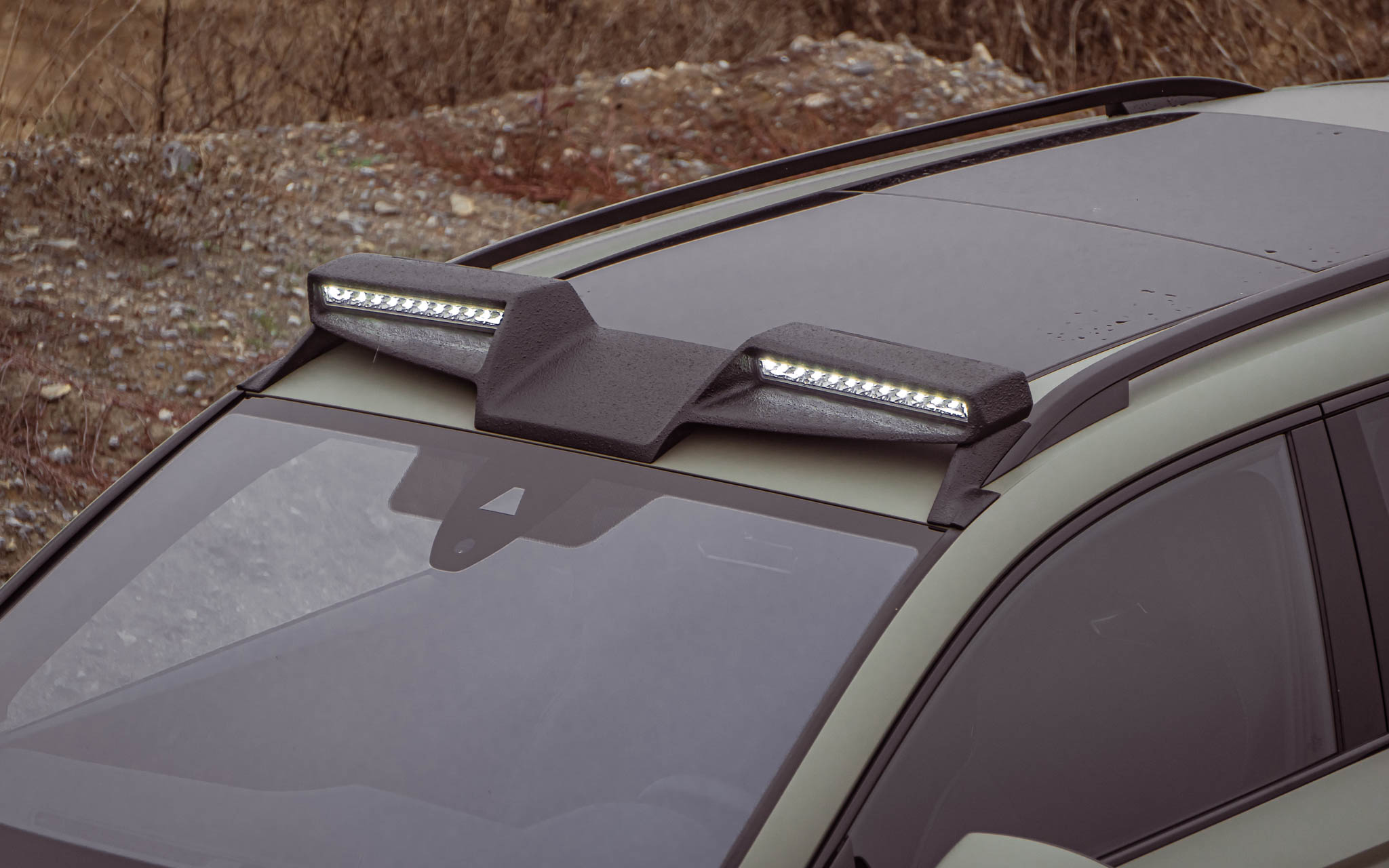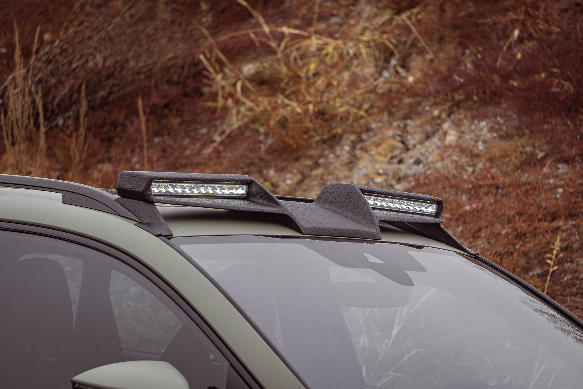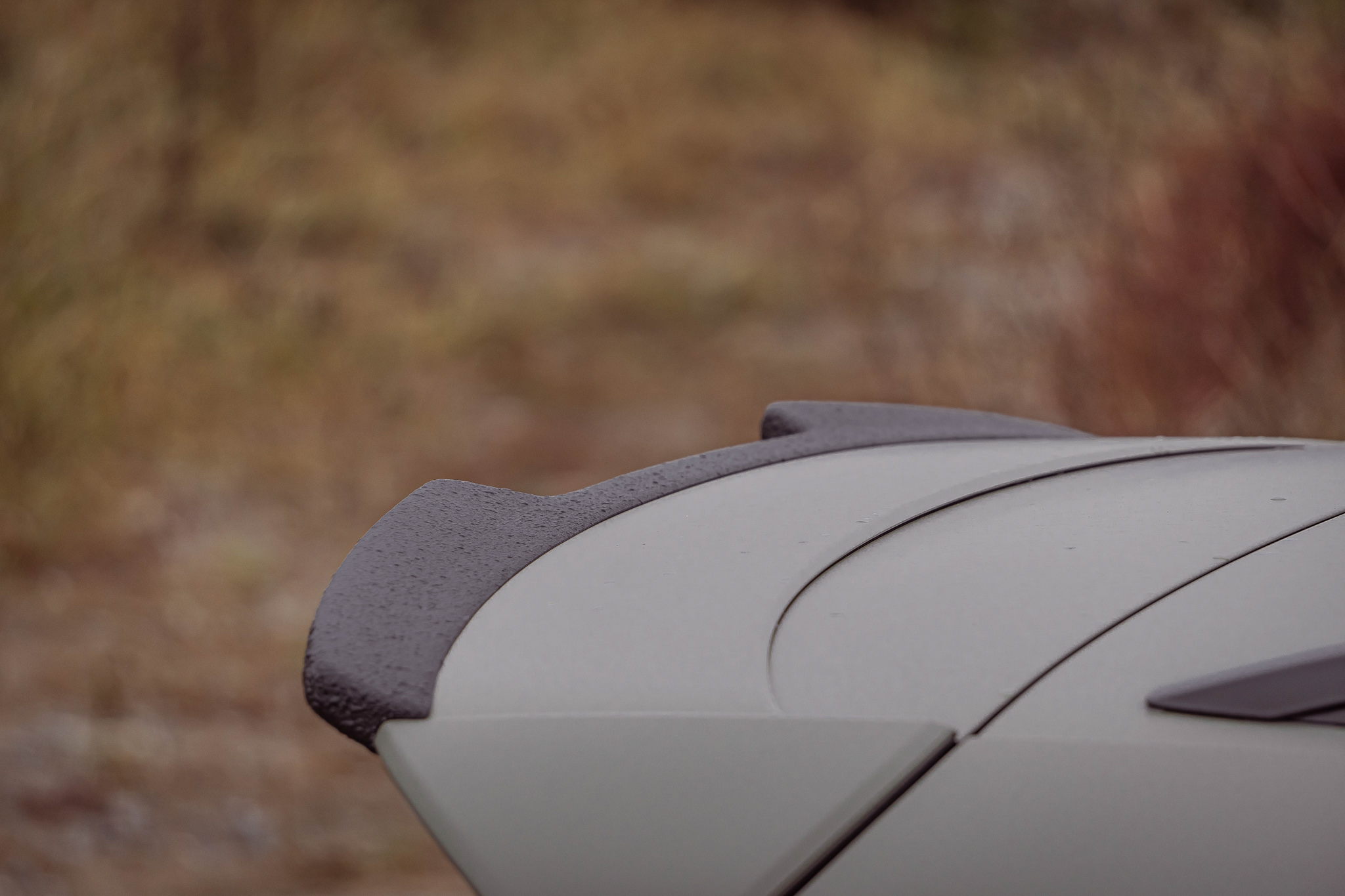 The rear spoiler lip is actually made of glossy black ABS plastic. For the "ALL-TERRAIN" variant, however, we have coated the rear spoiler with a black matt and robust textured paint. With this finish, the roof spoiler fits perfectly with the remaining attachments in the "ALL-TERRAIN" package.