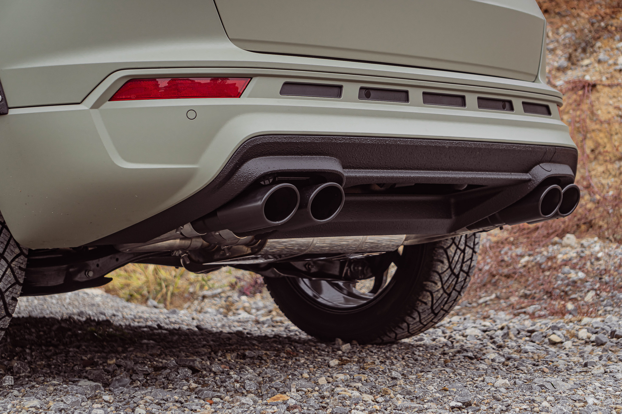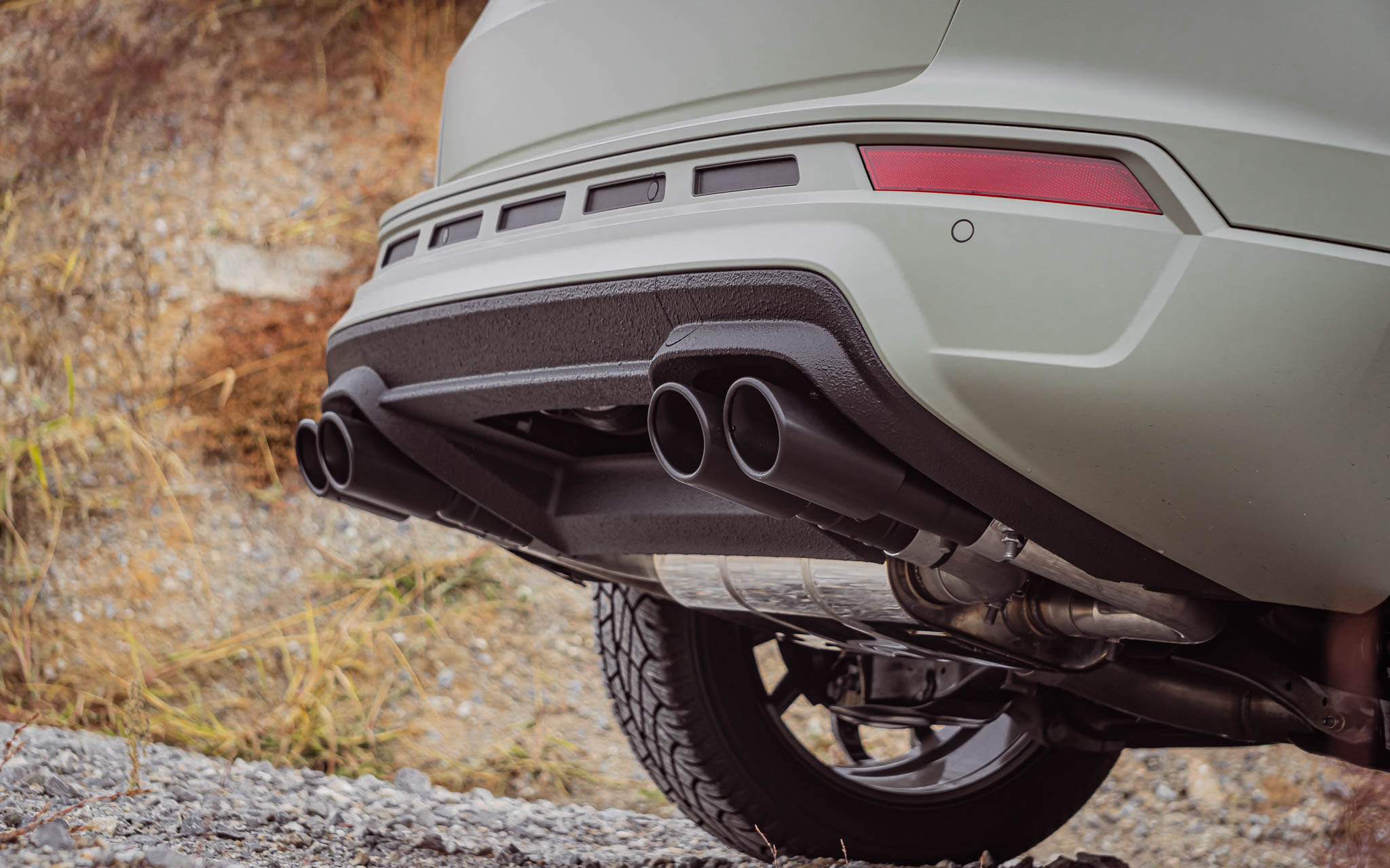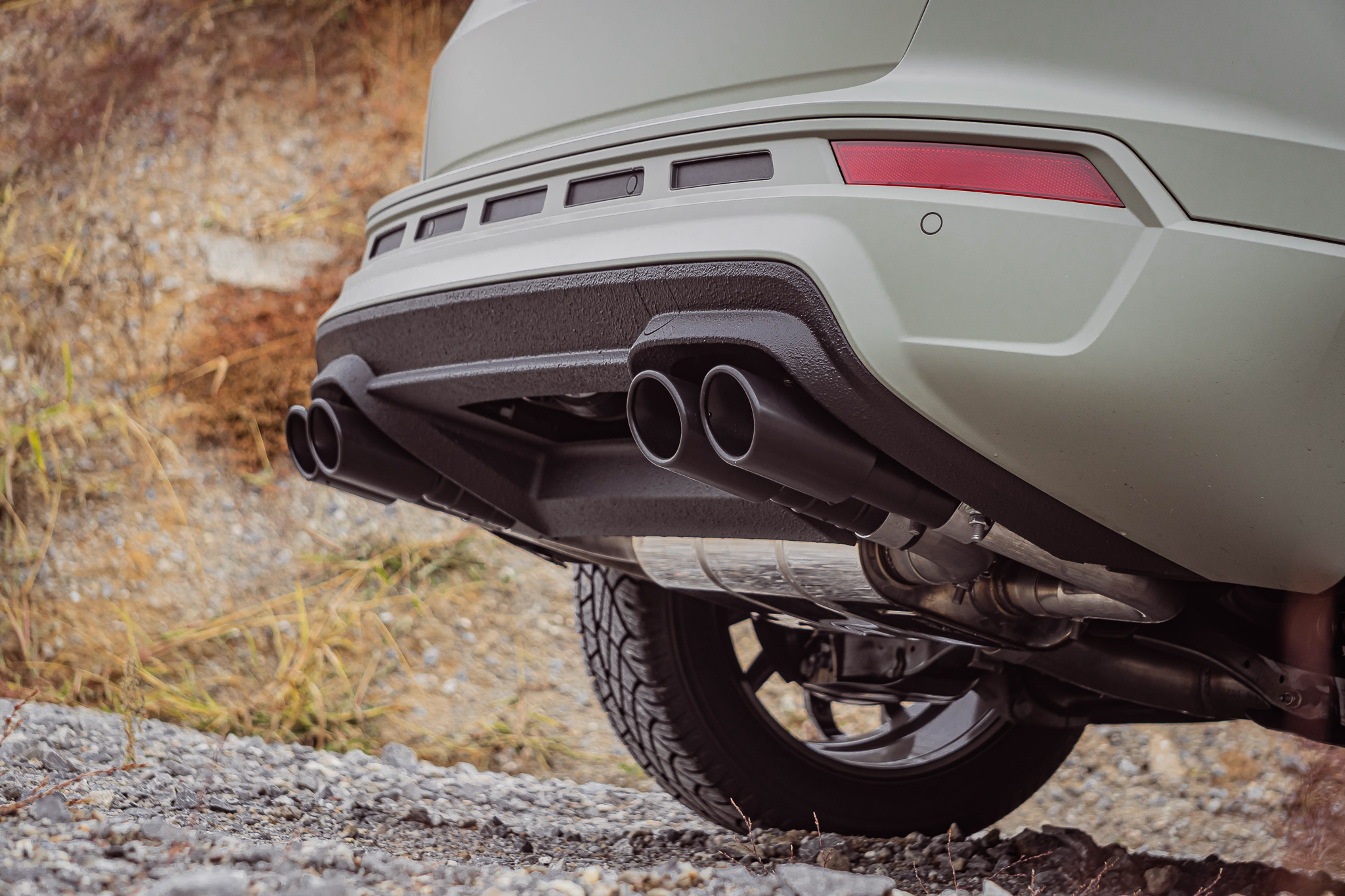 Four oval or round tailpipes, available in stainless steel or black enamelled