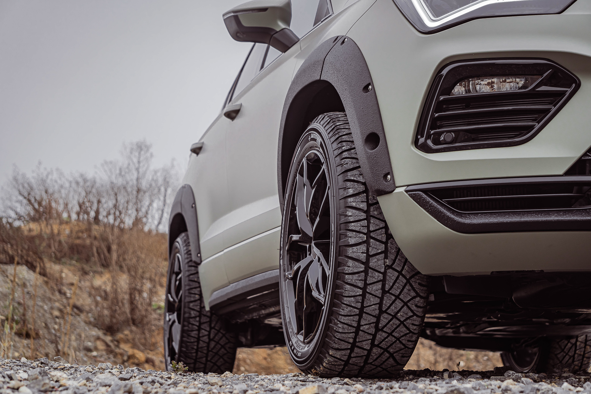 The 10-piece wide body kit in the "ALL-TERRAIN" version gives the Ateca a brutal OFF-ROAD look.