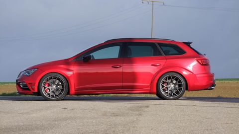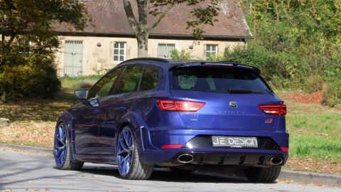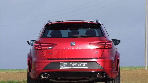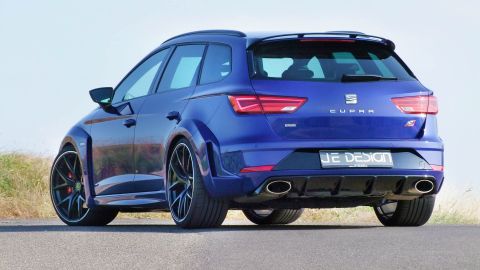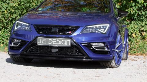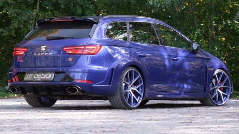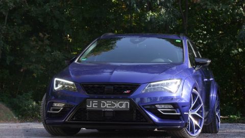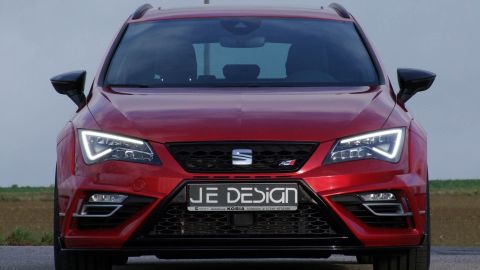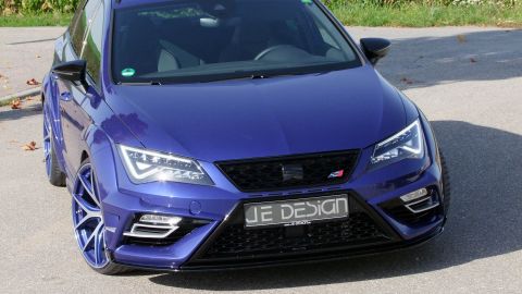 Wenn Seat seinen Kompaktsportler Leon Cupra liftet, dann ist es eine Frage der Zeit, bis JE DESIGN aus dem schwäbischen Leingarten den ersten Umbau präsentiert. Mit seinem 300 PS starken Reihen-Vierzylinder-Turbo und Allradantrieb ist der familientaugliche Kombi namens Leon Cupra 300 ST 4Drive schon ab Werk bärenstark motorisiert. Karosserie, Motor, Fahrwerk und Auspuffanlage bieten jedoch Potenzial für Modifikationen. Bis zu 380 PS samt Vmax-Aufhebung sind eine deutliche Ansage.