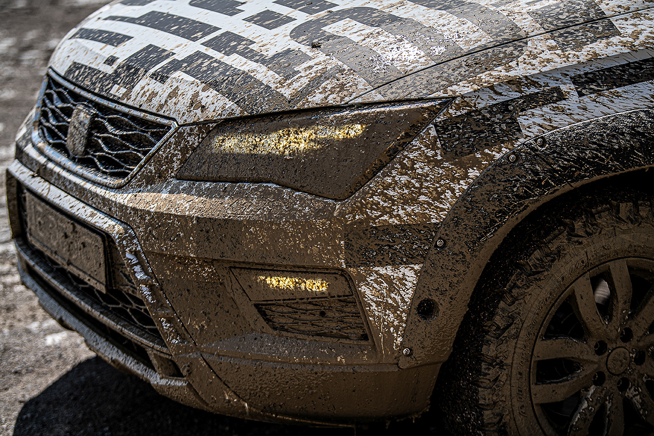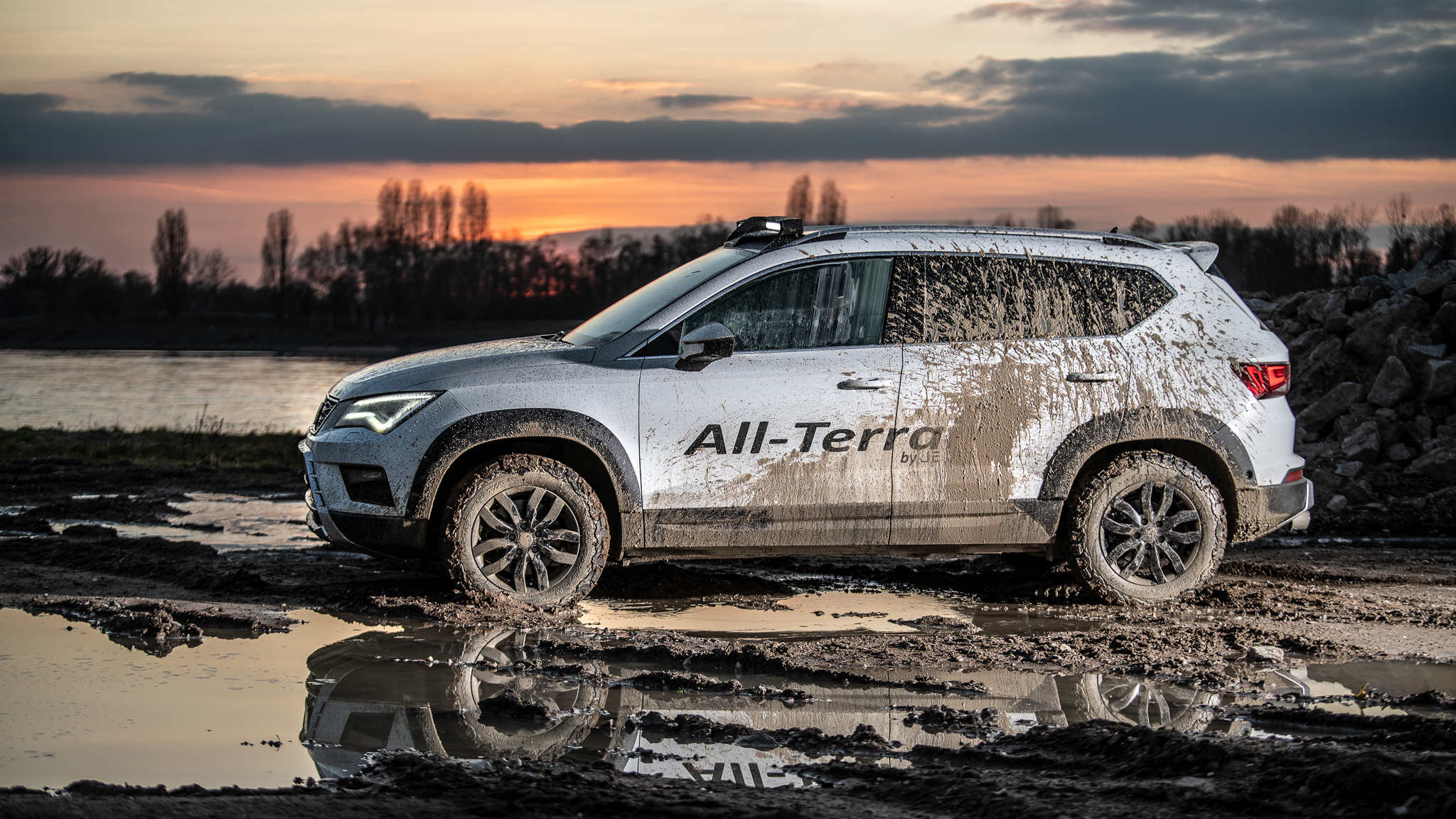 The “All Terrain” conversion can be carried out on almost all Seat Ateca 5FP models apart from the FR and Cupra Ateca. The flared wheel arches, roof panel with LED light bar and the bumper protection are available separately for the FR and Cupra Ateca. The sports exhaust described above is exclusively for the FR model with 2.0-litre TDI 4Drive.