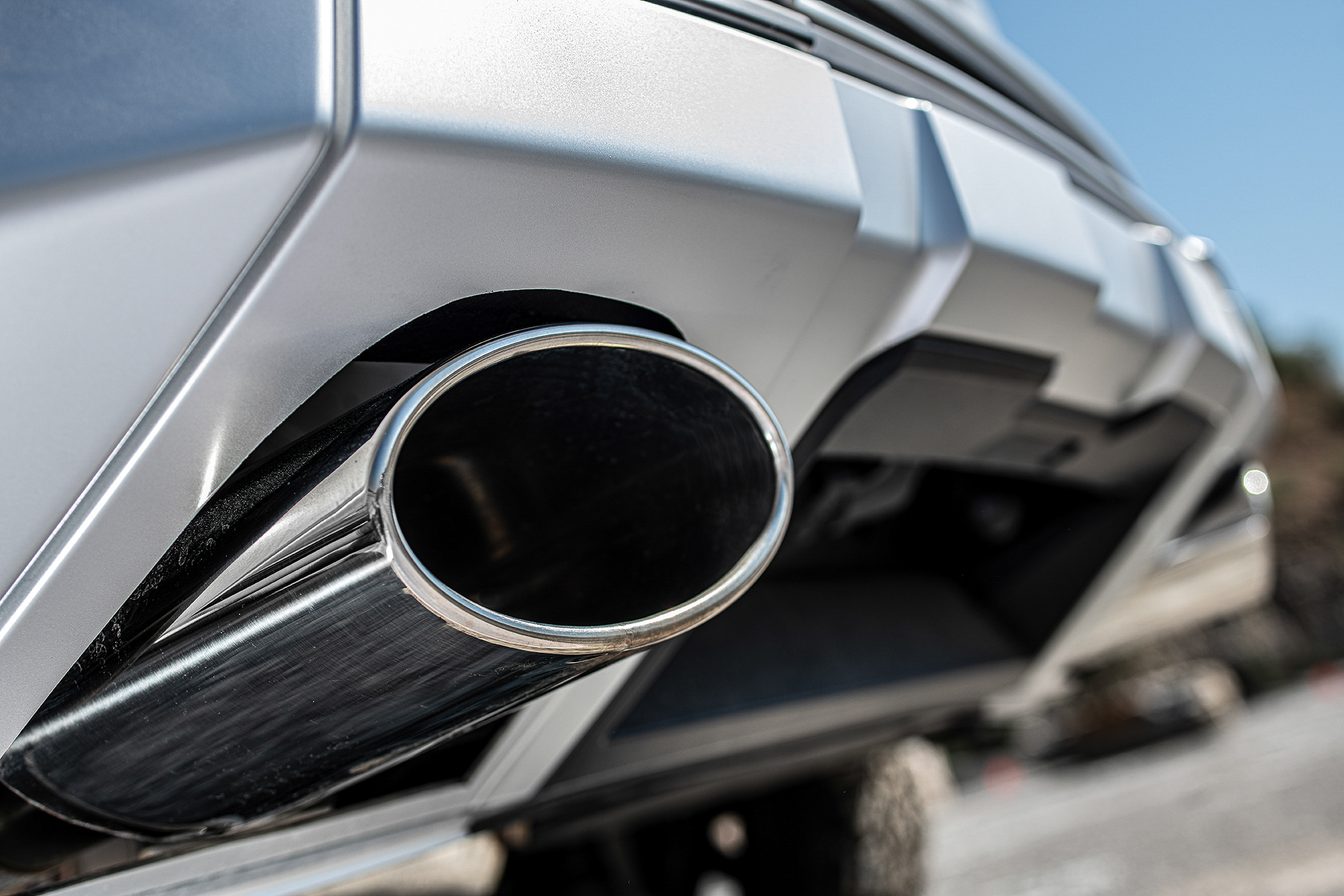 Liberating a deeper and fuller soundtrack, the stainless steel sports rear silencer features a pair of 80 mm diameter tailpipes per side. A less aggressive looking version has one oval (160 x 90 mm) tailpipe per side.a