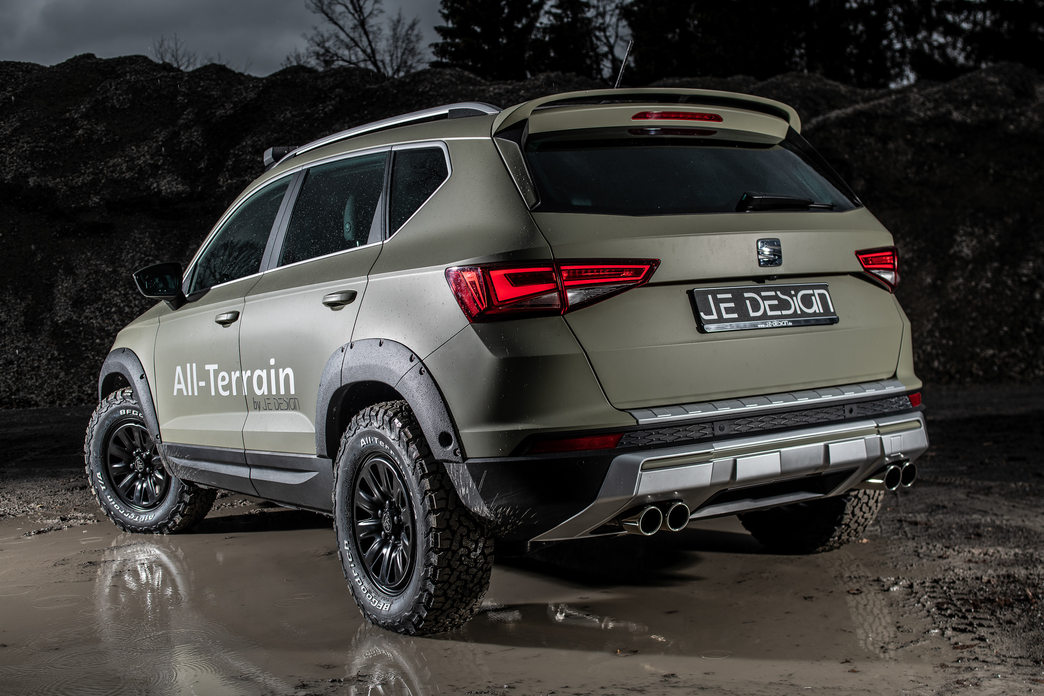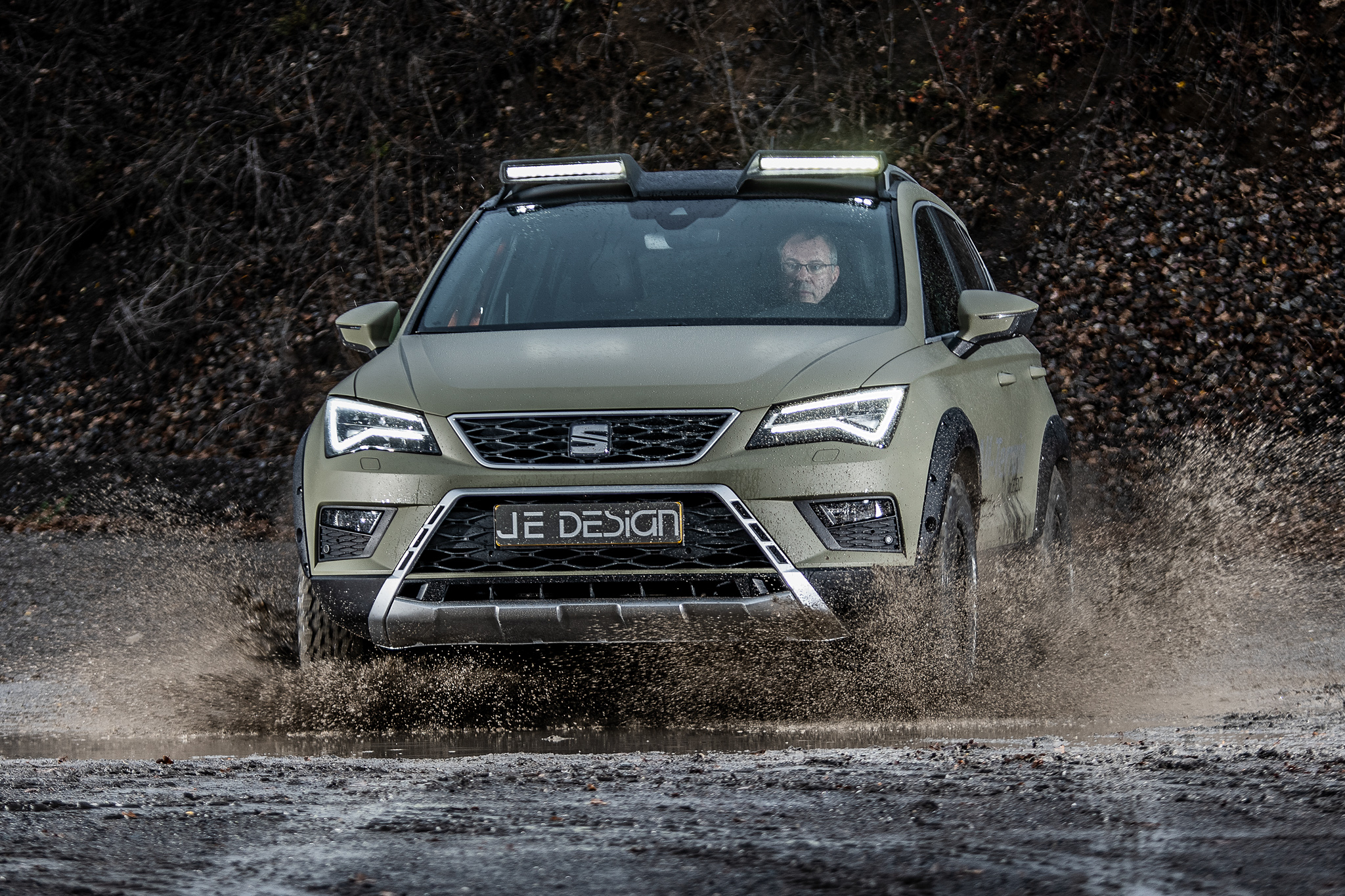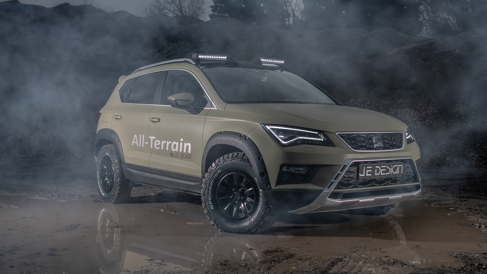 Based on the Seat Ateca Reference, Style or Excellence 2.0 TDI 4Drive, the JE DESIGN “All Terrain” features a raised ride height and off-road tyres under muscular wheel arch extensions. At home off the beaten track, the “All Terrain” is the ideal companion for lovers of the country lifestyle.